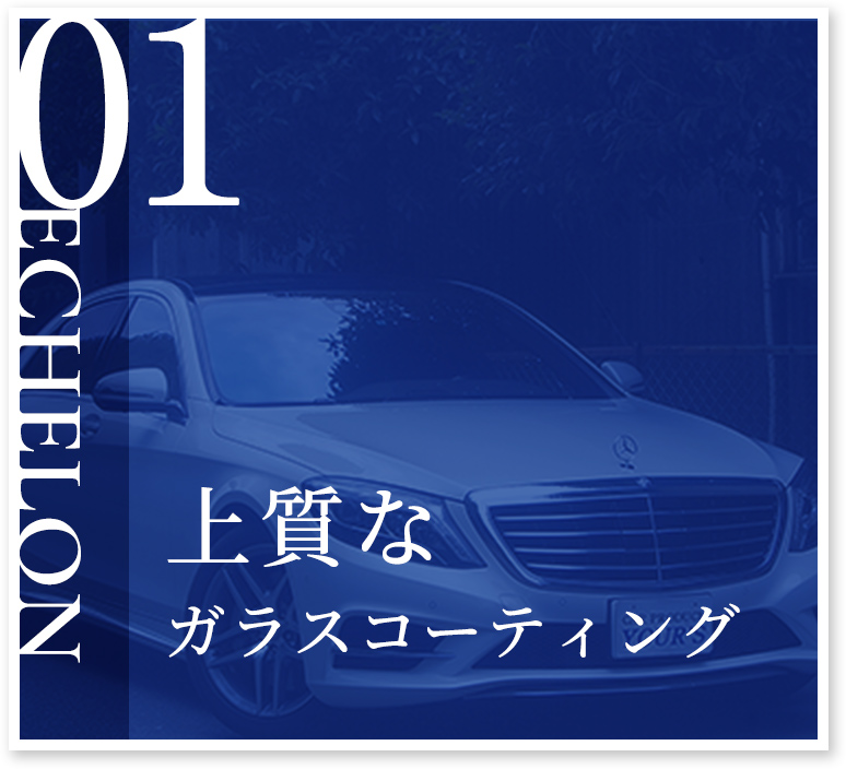 当社では、大手外車ディーラー、メーカーなども使用する「ECHELON(エシュロン)」を使用した、上質なガラスコーティングを提供いたします。