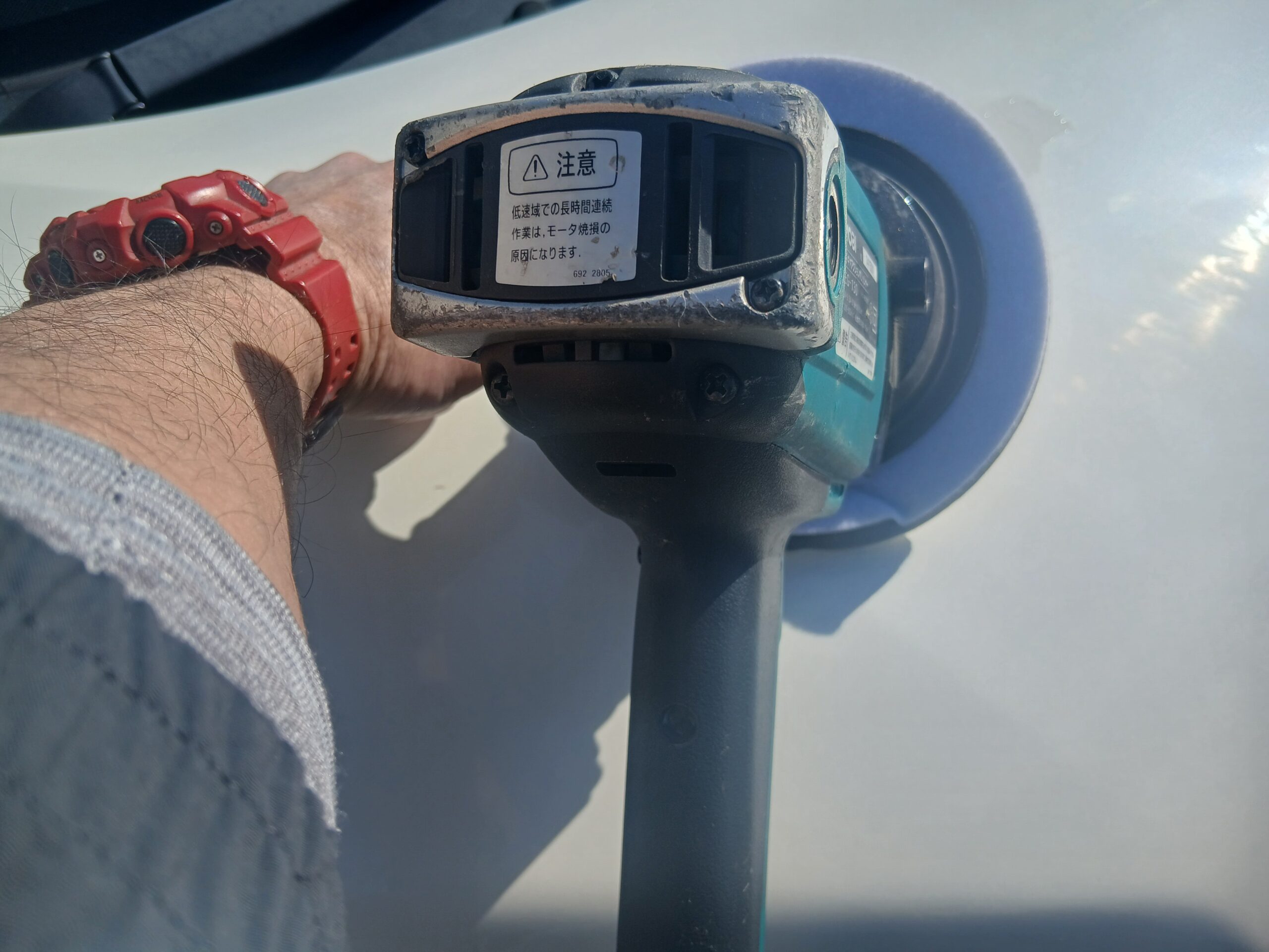 バフの機材を使用して、車全体の磨き、ライトの磨き
