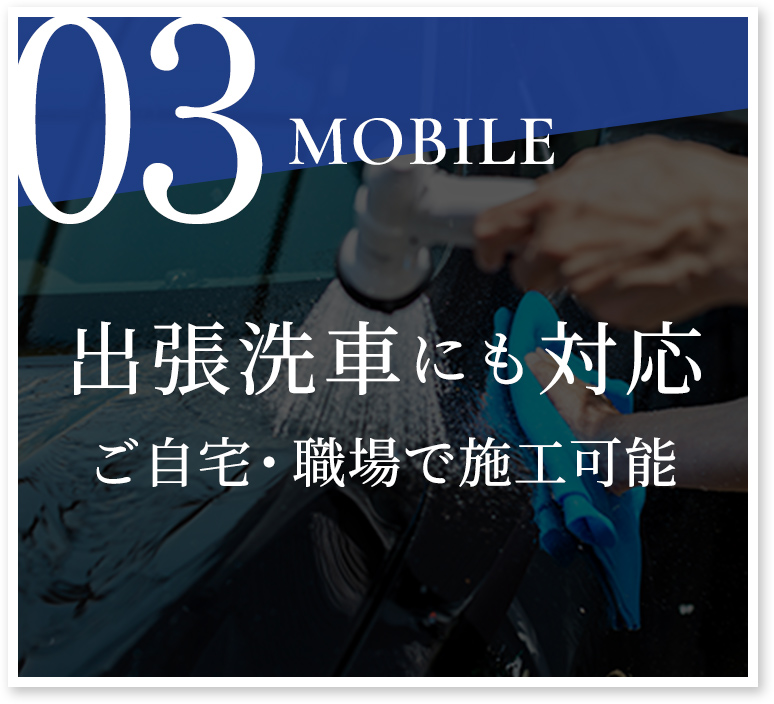 ご自宅や職場など、水道・電源設備がある場所へお伺いし、高い技術力で丁寧に洗車を行います。